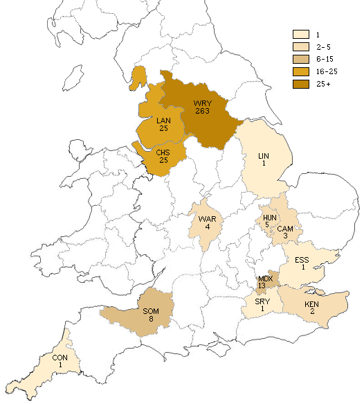 | None found in Wales, Scotland or Ireland in 1881. *Includes Netherwood, Neatherwood, Neitherwood, Nethewood, Nethawood, Nethermoon and Notreswood. |